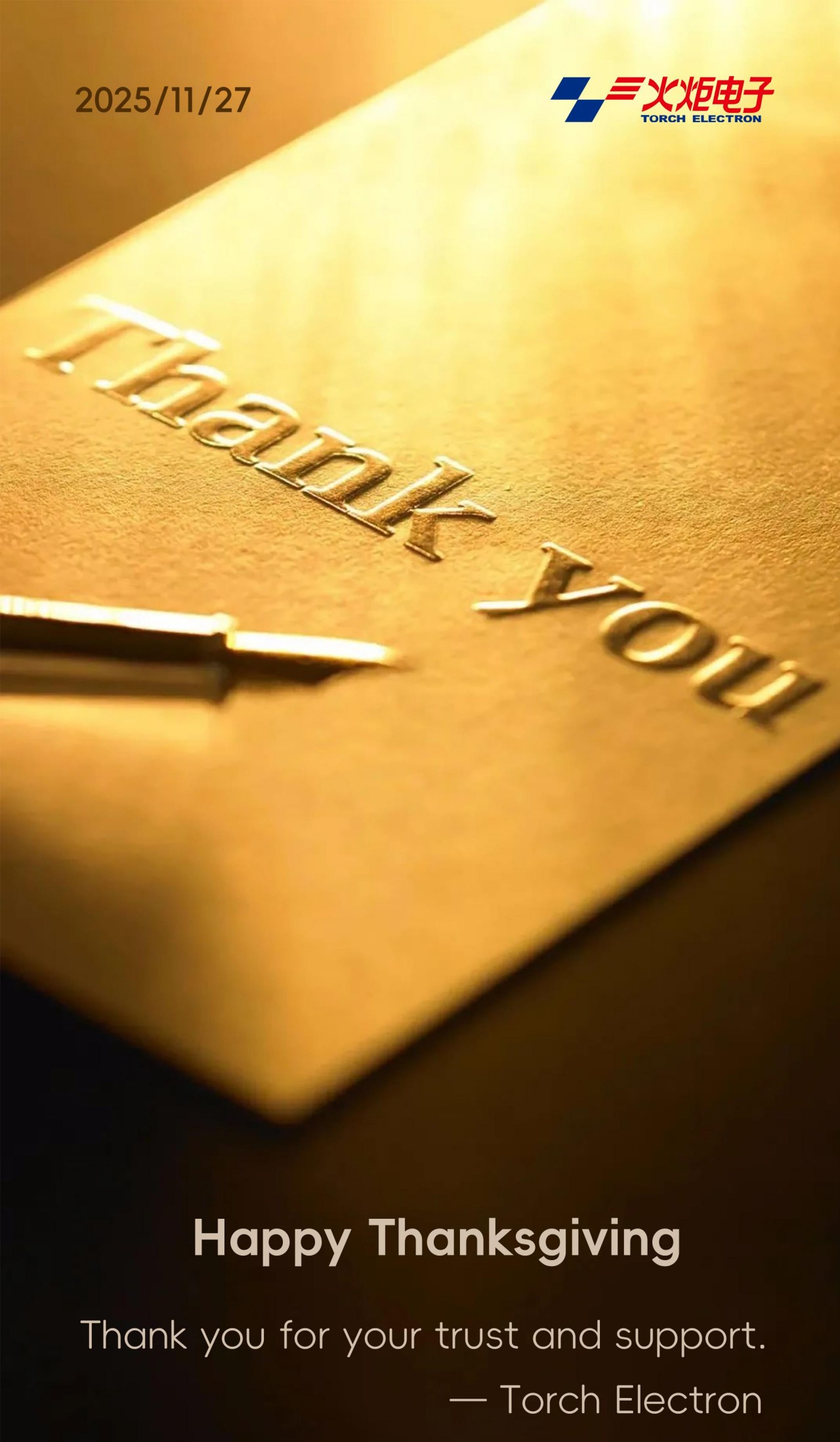 On this special day of gratitude, we extend our heartfelt thanks for your continued trust and support.Your partnership motivates us to keep moving forward and creating value.Wishing you a warm and joyful Thanksgiving!