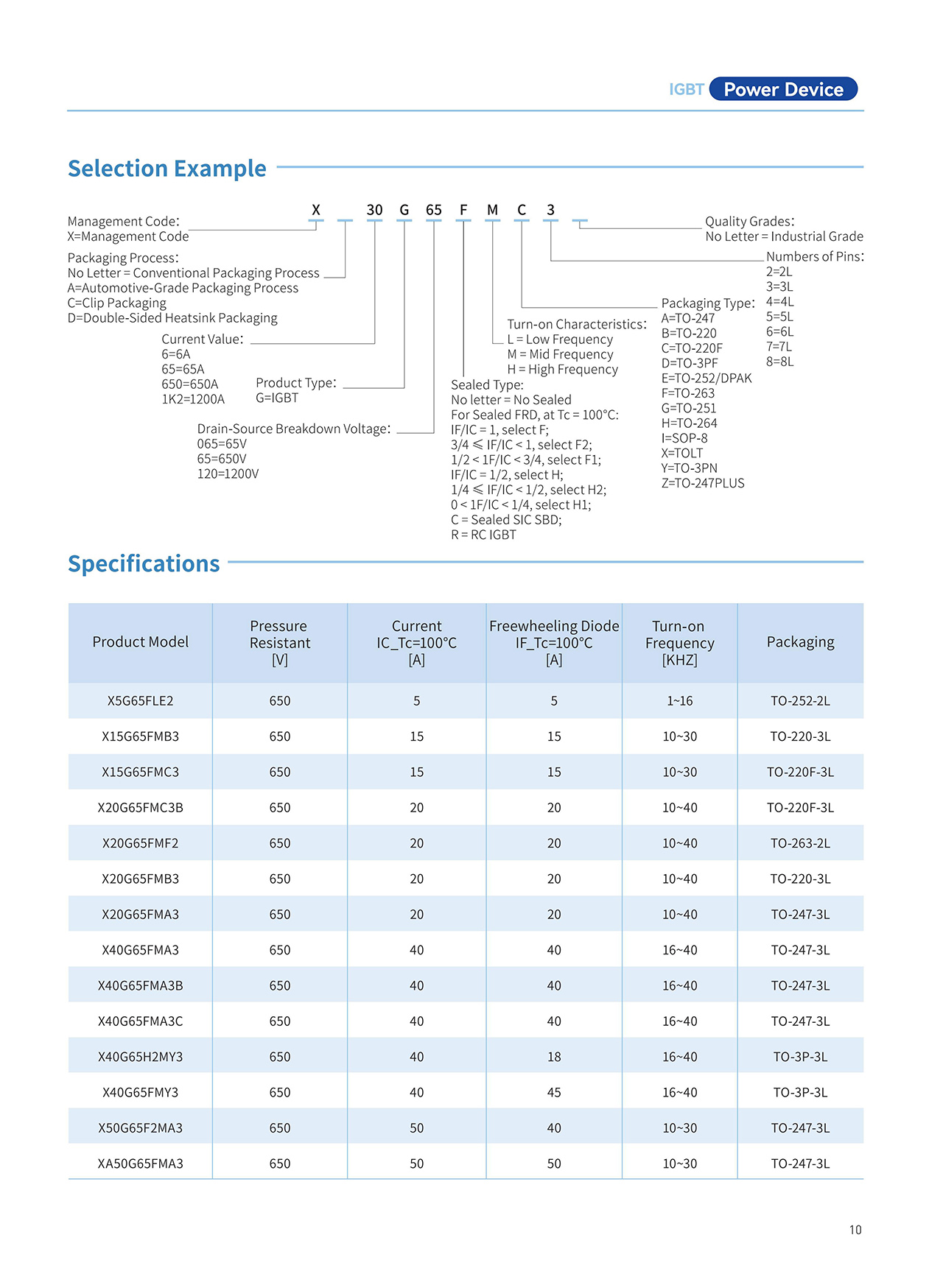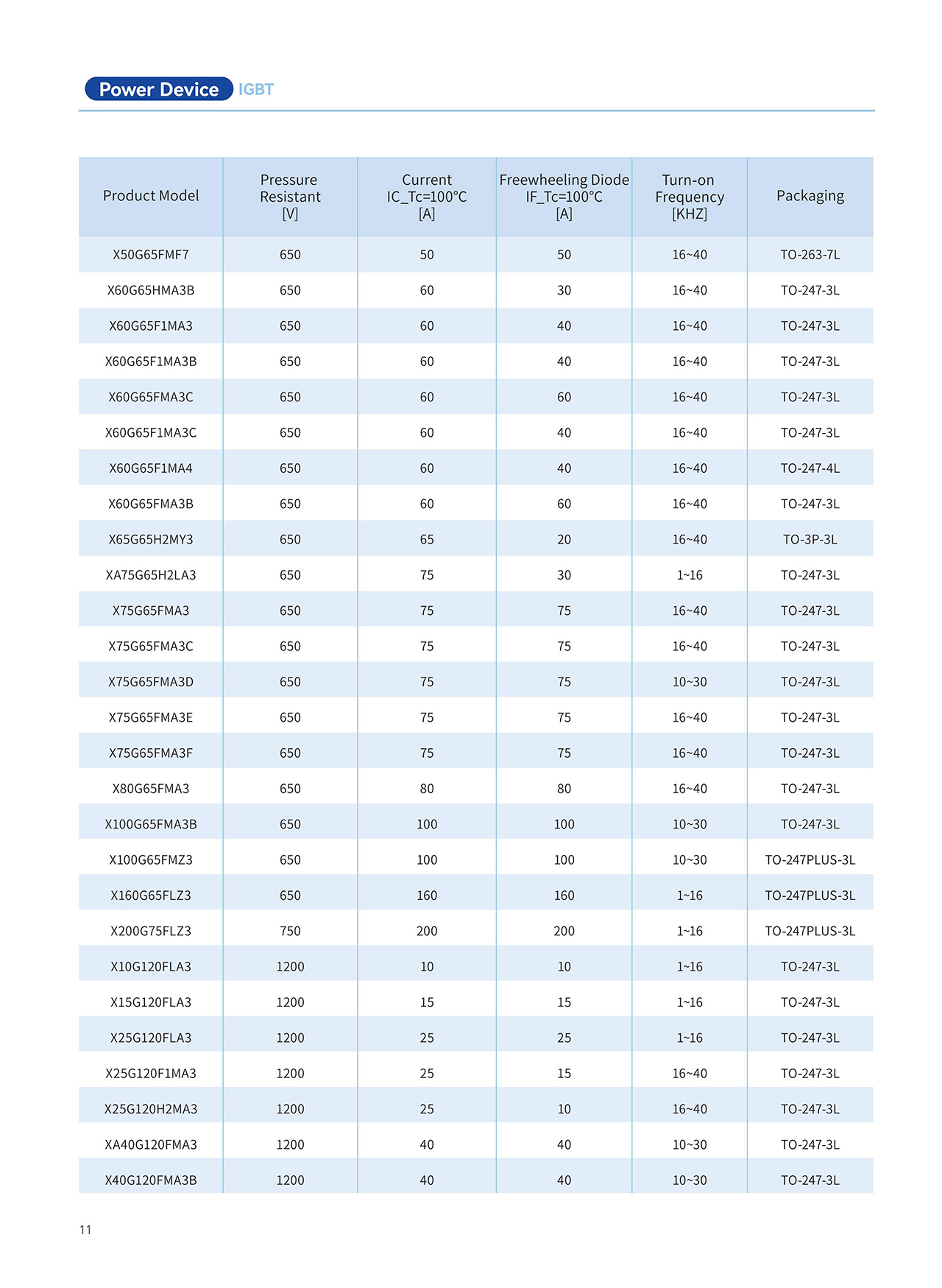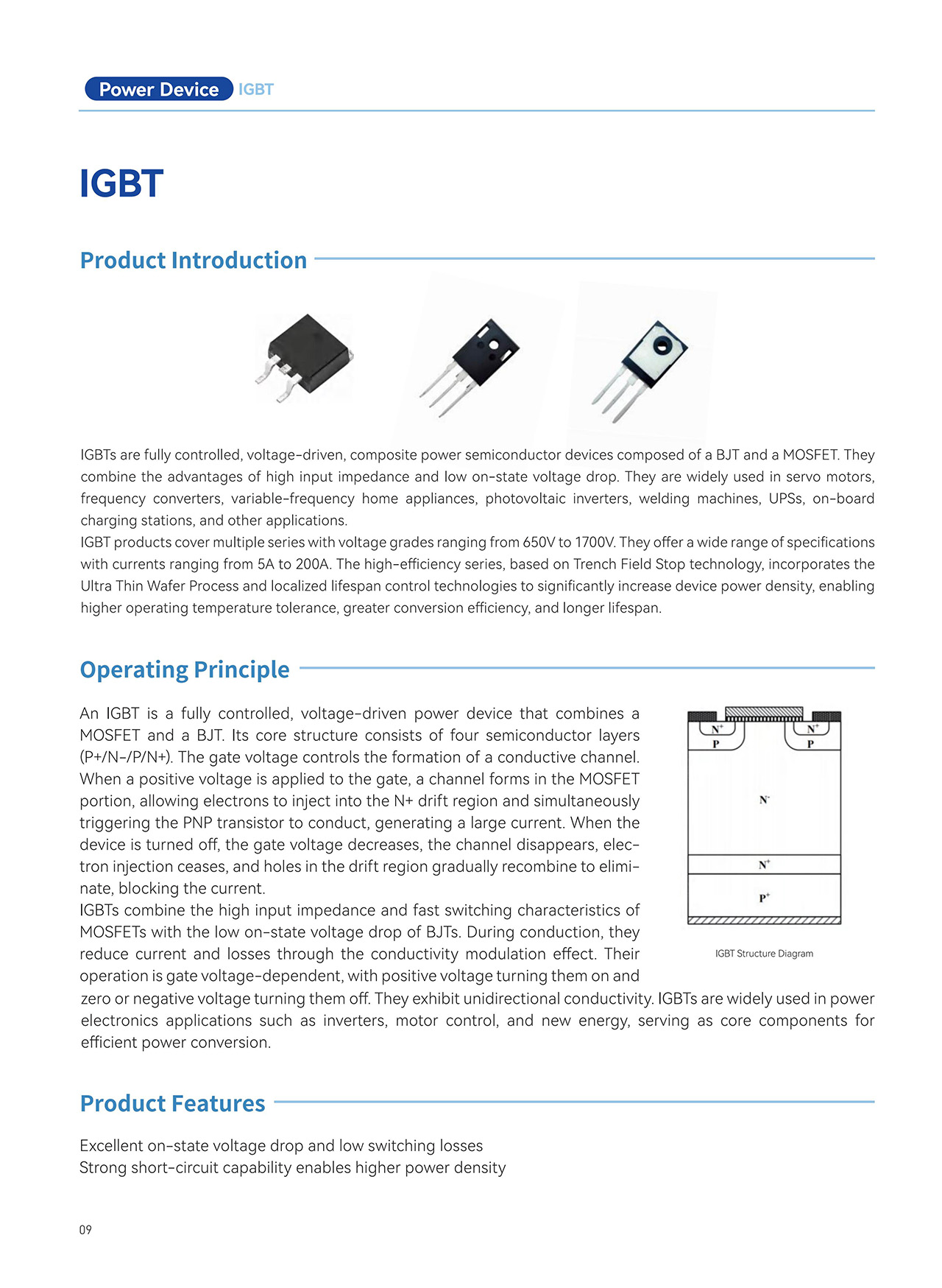 Nuestra cartera de productos IGBT abarca múltiples series con tensiones nominales desde 650 V a 1700 V y las calificaciones actuales de De 5A a 200ALa serie de alta eficiencia, desarrollada con Tecnología de parada de campo en zanjas, Proceso de obleas ultrafinas, y control de vida localizado, logra una mayor densidad de potencia, una tolerancia térmica mejorada, una eficiencia de conversión mejorada y una vida útil prolongada.